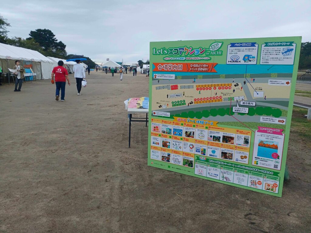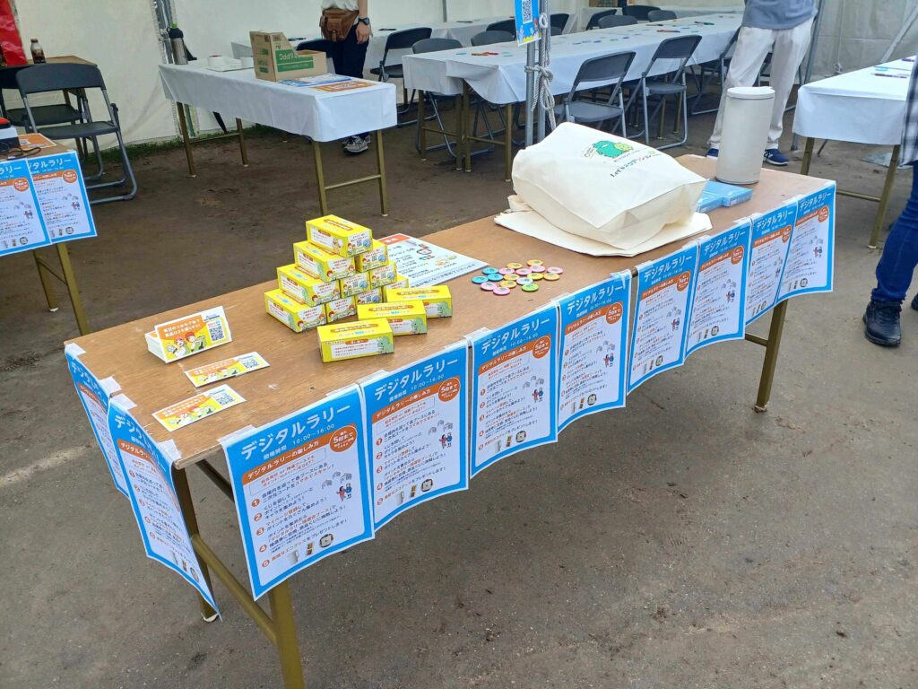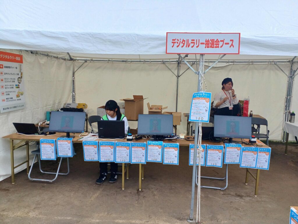 岡崎市の乙川河川緑地で開催された本イベントにおいて、来場者は愛知県ブースや企業ブースなど各ブースを巡りながら、スマートフォンで二次元コードを読み取りポイントを貯めるデジタルスタンプラリー形式のでらっくじを実施。
