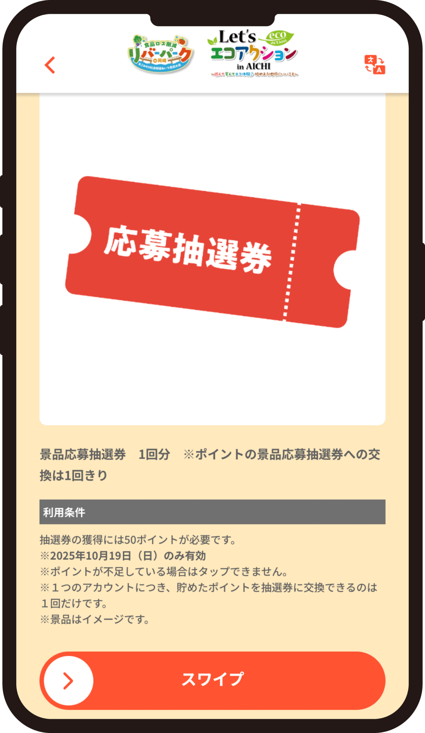 くじの結果に応じてポイントを集め、一定数に達すると、エコグッズが当たる抽選に現地で応募・参加可能。