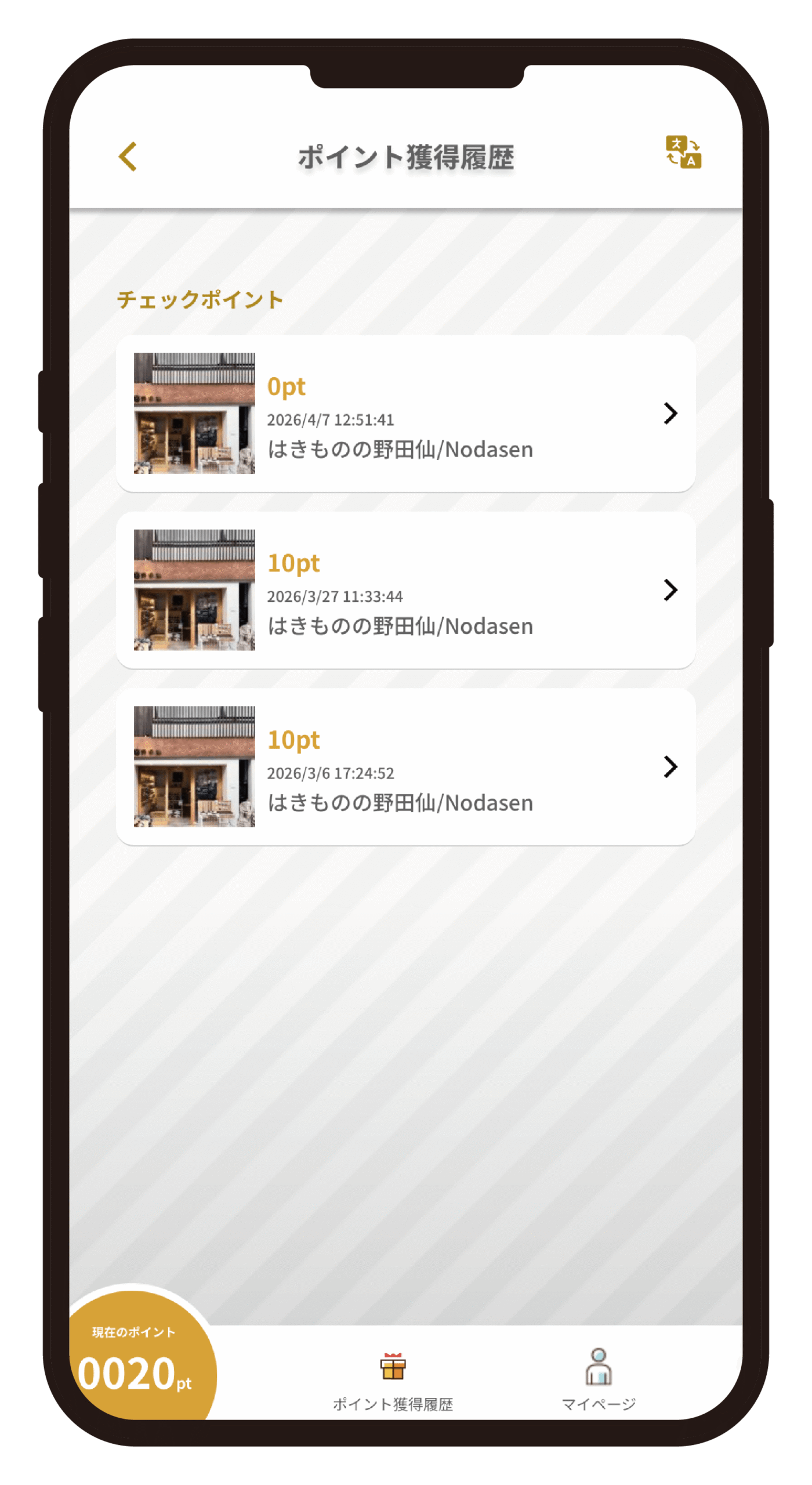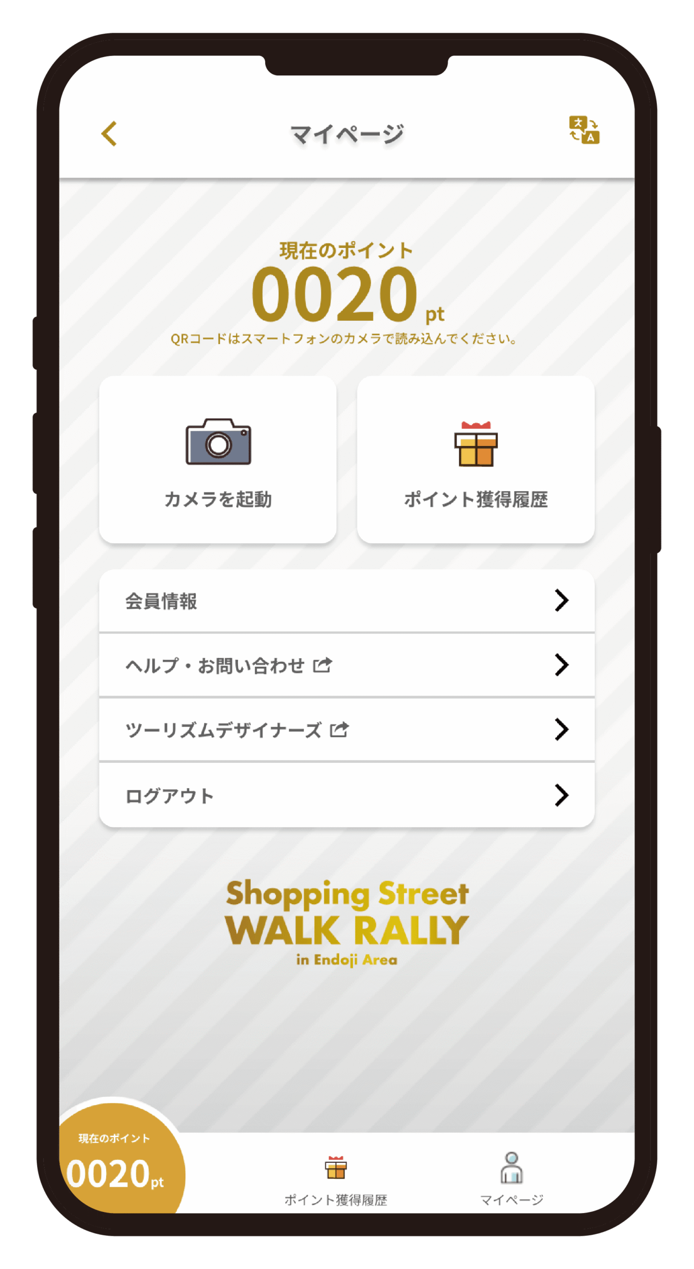 また、マイページ内にはカメラボタンを設置し、QRコード読み取りまでの導線をわかりやすくすることで、参加者が迷わず操作できるよう工夫しました。加えて、でらっくじ内には翻訳ボタンも備えており、外国人参加者でも画面内容を把握しやすく、スムーズに体験へ参加できる設計となっていました。